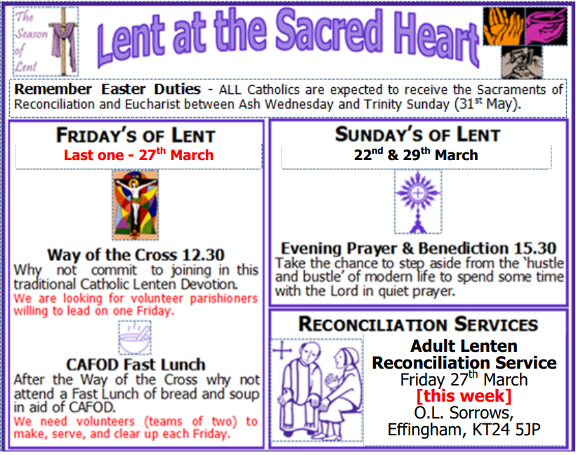 Please note all lenten events at Sacred Heart