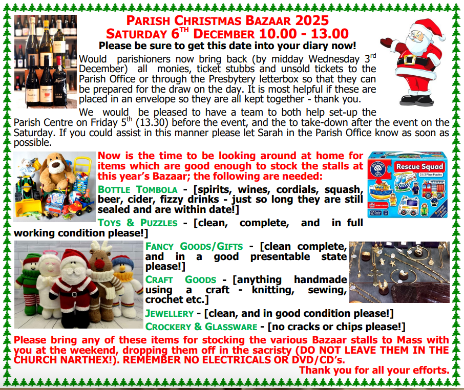 PARISH CHRISTMAS BAZAAR 2025 SATURDAY 6 TH DECEMBER 10.00 - 13.00